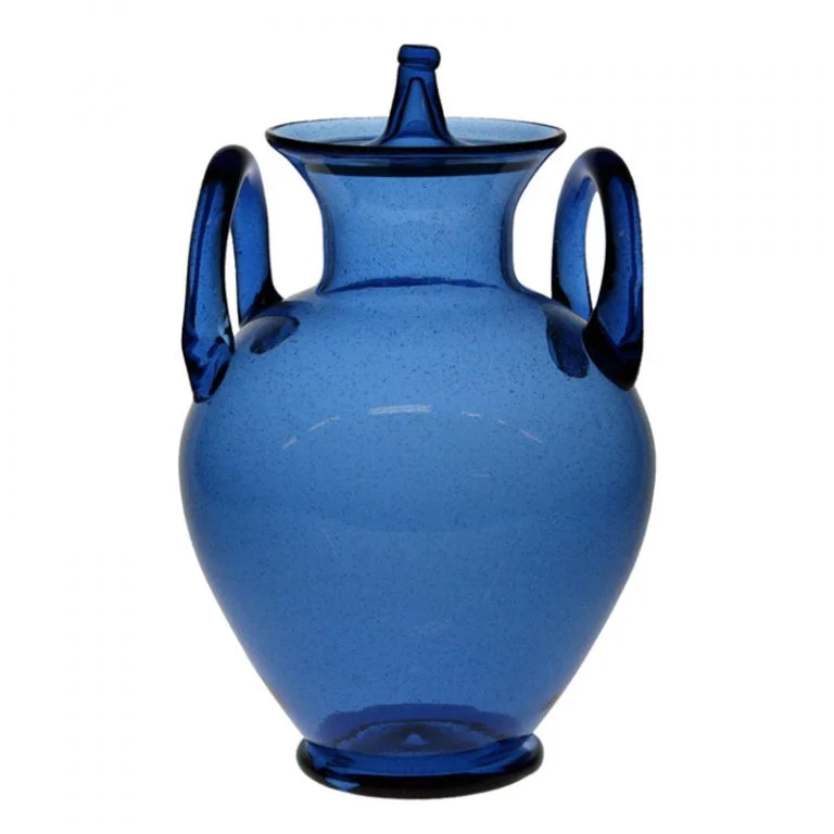Romersk blå urna med lock. Urnan har en volym på ca. 1,5 l och är tillverkad efter modell från 100-talet.
